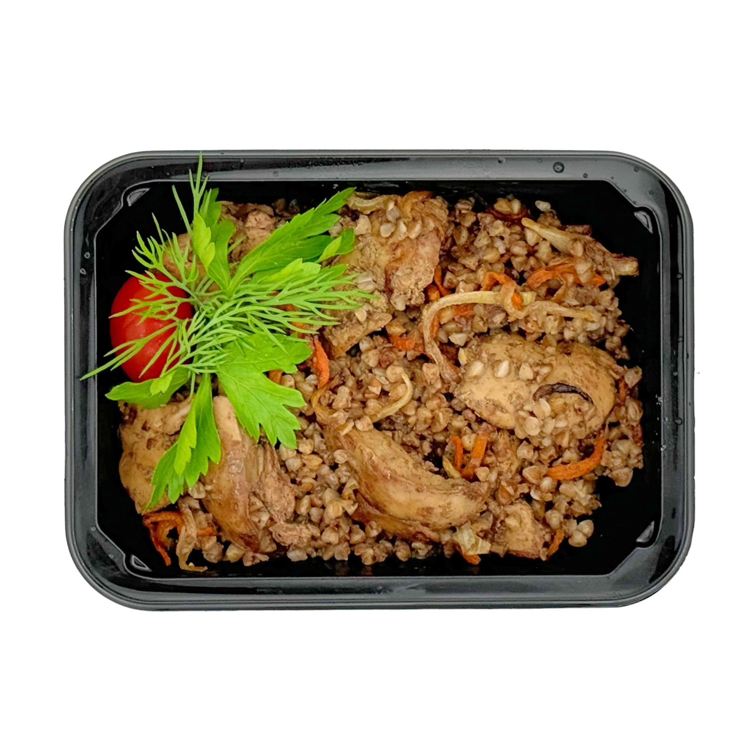 Куриная печень, Гречка, Лук репчатый, Морковь, Портвейн, Специи