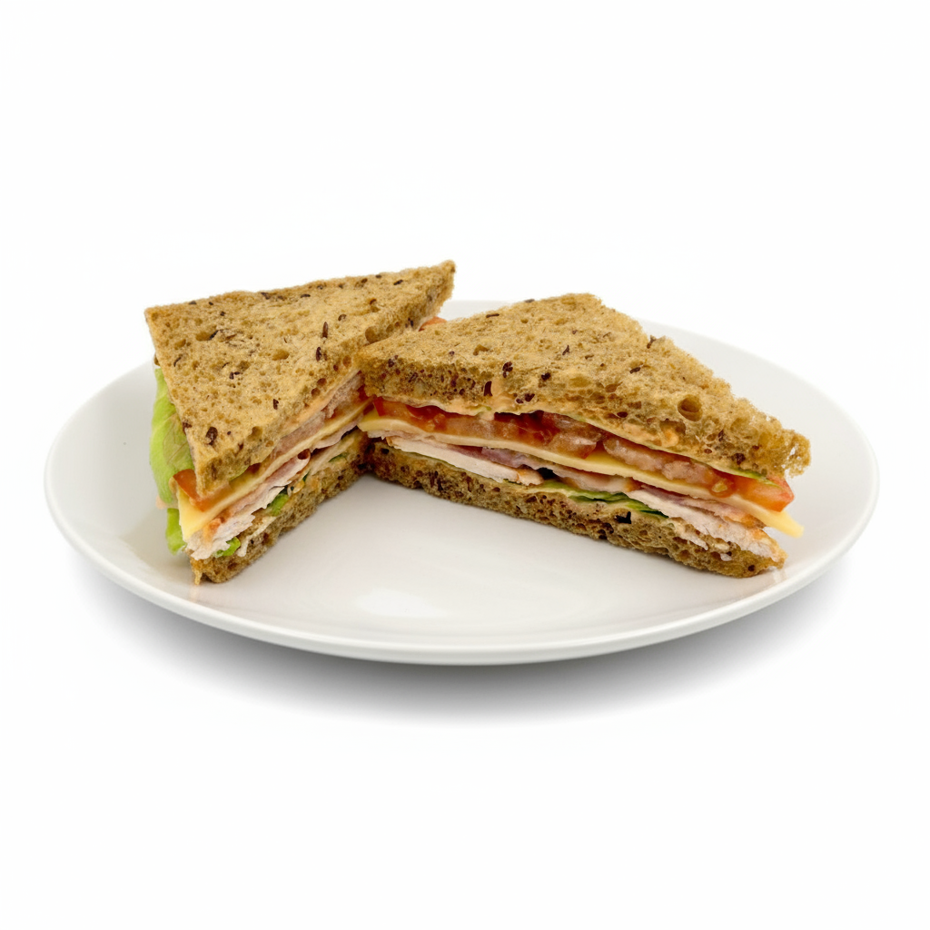 Куриная грудка, Бекон, Помидор, Сыр гауда, Соус BBQ, Салат айсберг, Цельно зерновой хлеб